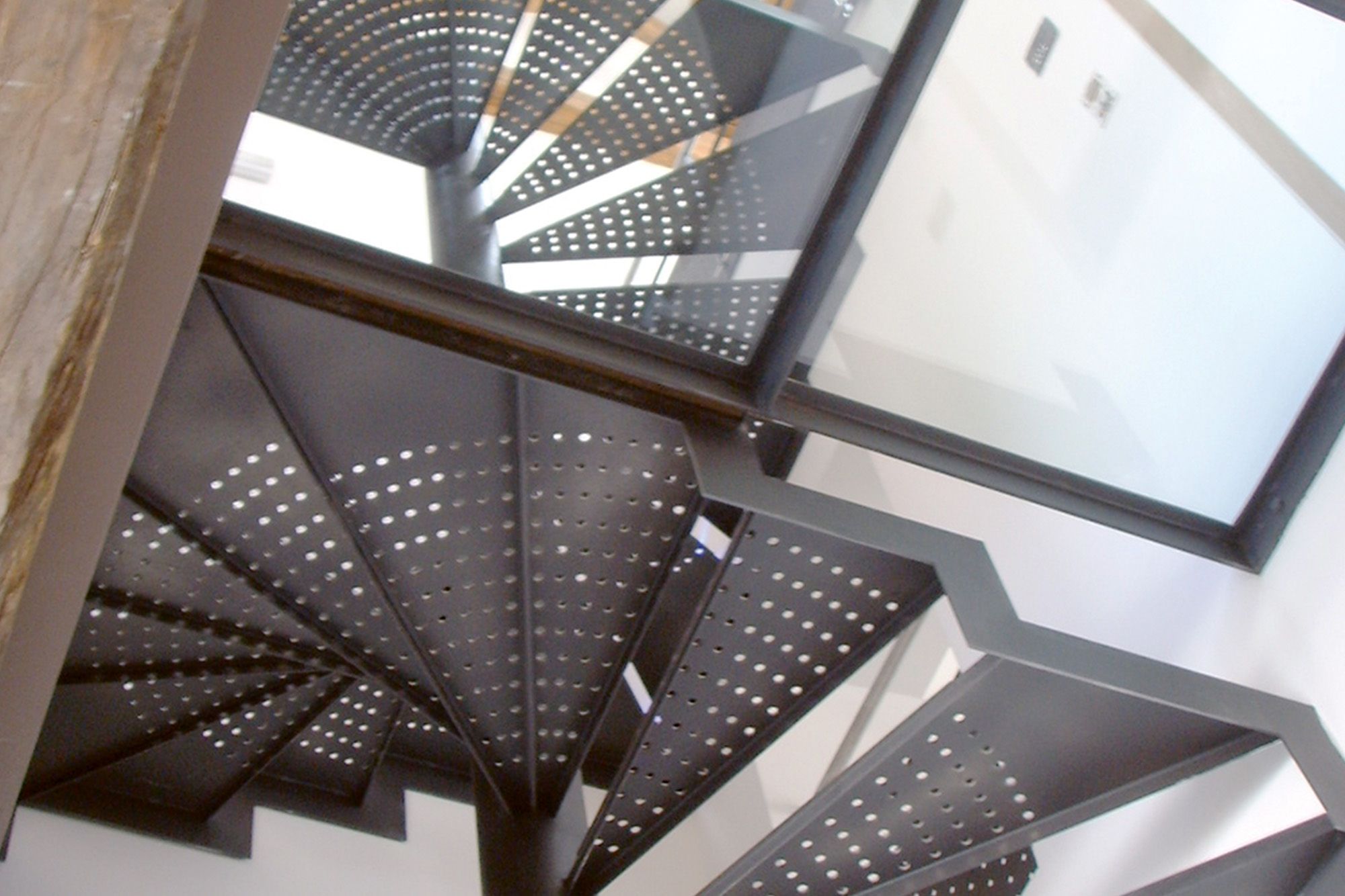 Wenteltrap in weervast staal bij bouwblok Madeleine