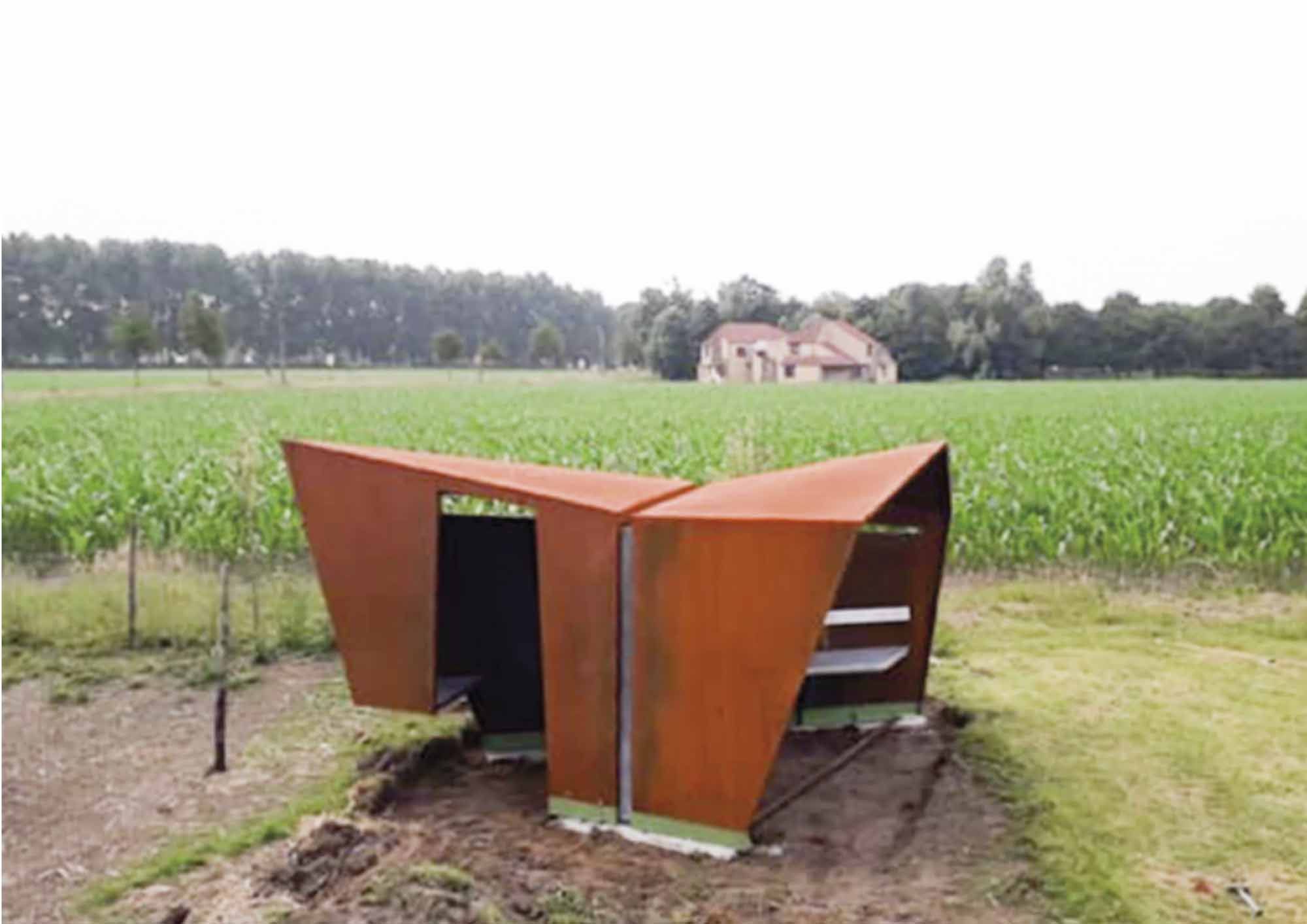 Overdekte bushalte met roestvaste buisstructuur