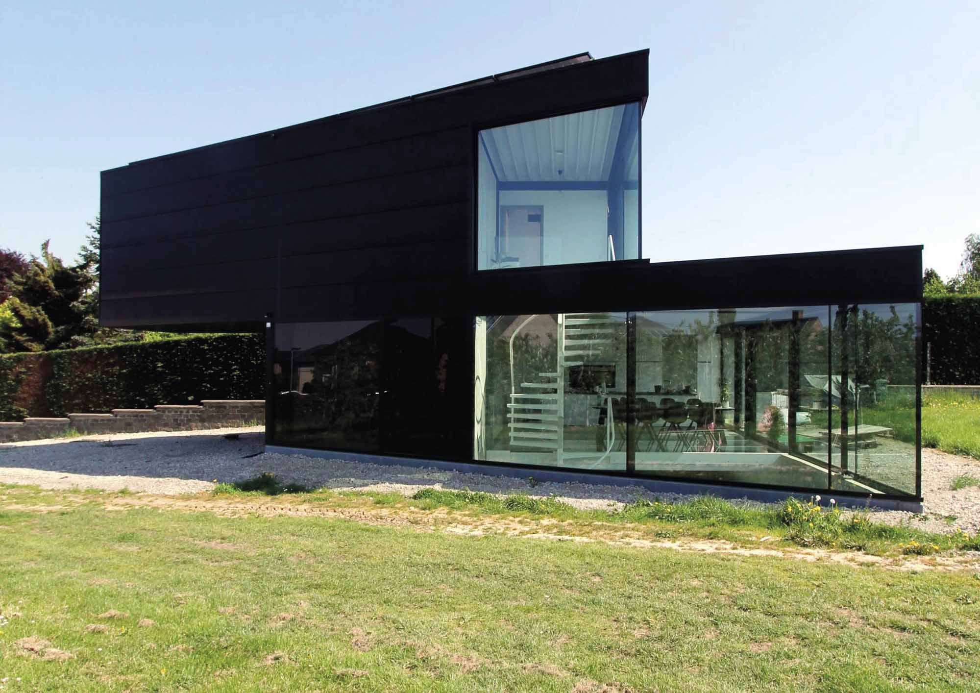 Spitse staalbouwwoning met glazen vloer