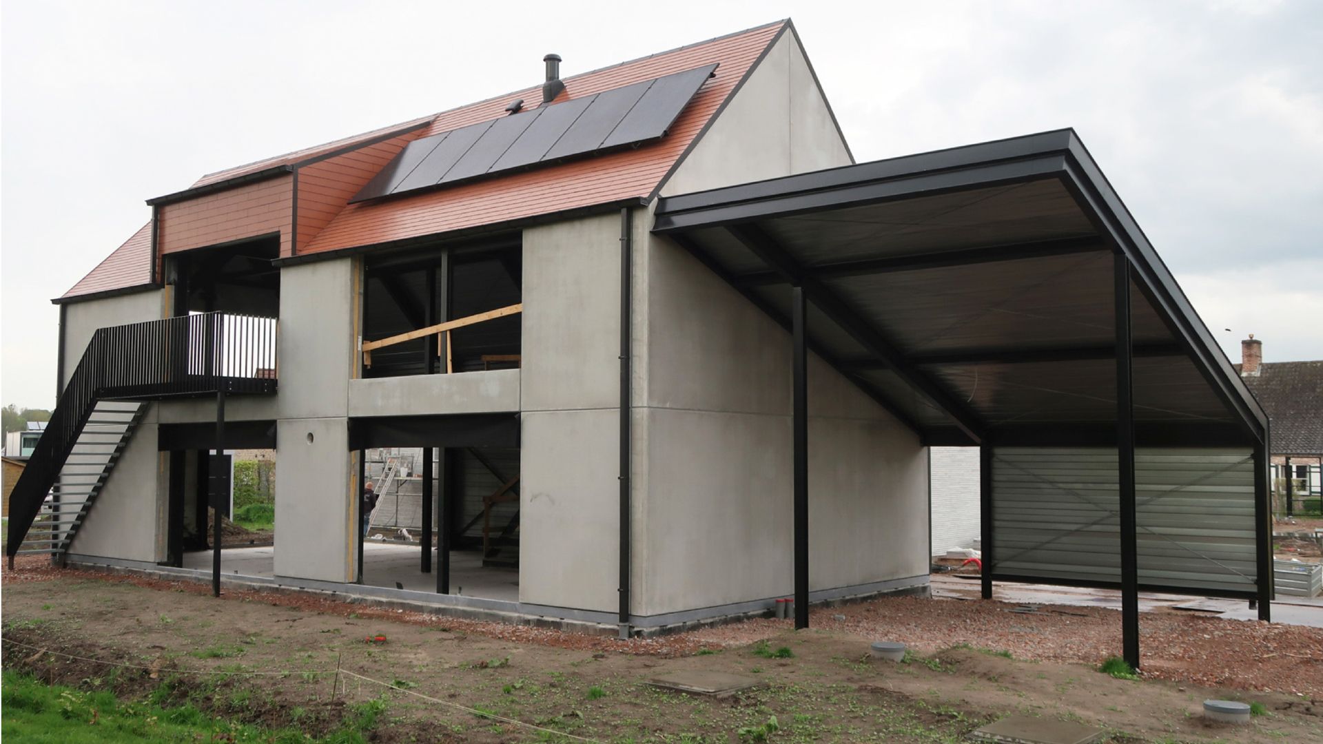 Staalskeletwoning met carport en loggia