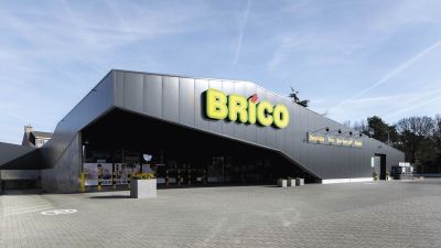 Tekst: To make a new shop stand out from the ribbon development around it, the building was knitted into the middle of the existing block like a snake-shaped Tetris piece. It was given a typical industrial form with a slightly sloping roof, and the facade was cut out at the front. The entire upper structure including columns, girders, walls, roof and exterior panels were made of S235 steel and were delivered and assembled on site. The heavy girders for the basement cover called for care and precision. In all, more than 76 tonnes of steel were processed. The anthracite-grey JI WALL 1000 VB M facade panels were supplied by Joris Ide, as were the 0.75 mm type 106 galvanised Steeldeck roofing sheets. The roof cladding itself is made of PVC and the whole construction was fire proofed. Elongated skylights were fitted in the new roof areas where necessary.