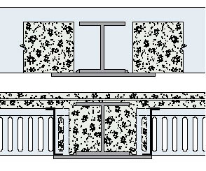 Les colonnes et les poutrelles peuvent aussi être coulées dans le béton, entièrement ou partiellement. Différentes méthodes de calcul pour différents types de poutrelles et de colonnes sont données dans les Eurocodes (partie 1994-1-2). De cette manière, on peut atteindre une résistance au feu de 120 minutes.