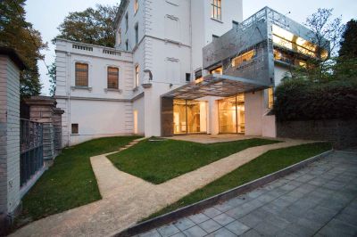 Association d’inox, acier peint, verre et bois au Palais de Justice, Anvers.