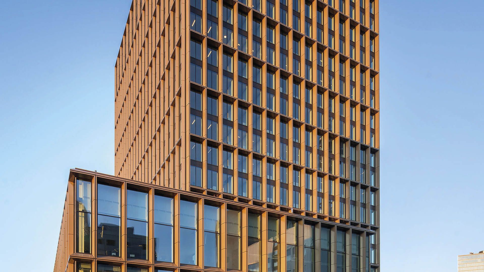 Le complexe de bureaux et le centre de conférence souterrain de l’Agence Européenne des Médicaments (EMA) à Amsterdam ont été achevés en un temps record. Le bâtiment s’étend sur 40.000 m2 et mesure 80 m de haut. La rapidité d’exécution étant une question cruciale, la structure porteuse se compose principalement d’un squelette en acier S355 entièrement démontable (colonnes et poutres avec assemblages boulonnés) et de dalles mixtes acier-béton. Les planchers des 16 étages de bureaux de ce bâtiment sont en grande partie composés de poutres reconstituées soudées, de sorte que l’acier a été utilisé de manière optimale. Dans les contours de la superstructure, quelques poutres-treillis ont également été intégrées pour accueillir des colonnes. Les fondations et le noyau de stabilité sont en béton armé. La construction métallique est munie d’un revêtement époxy résistant au feu, qui garantit une résistance de 90 minutes.
