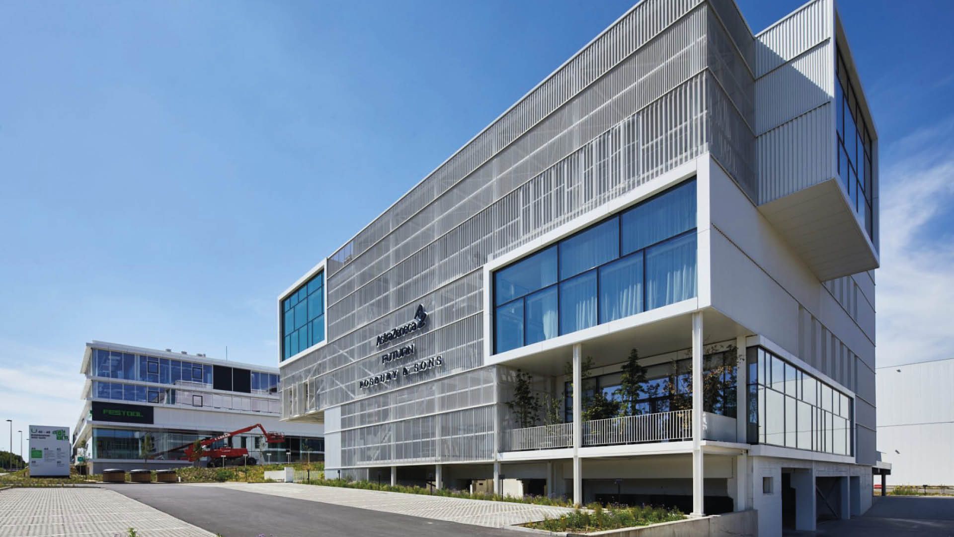 Dans le parc d’activités Gosset à Grand-Bigard, au sud du Ring de Bruxelles, le site de Corelio devient un parc industriel diversifié et multifonctionnel, pour de nombreux utilisateurs, dans le cadre d’une transformation écologique. Côté rue, l’ancien bâtiment de stockage avait beaucoup à offrir et a donc été entièrement rénové, de sorte qu’il se singularise désormais comme volume de bureaux polyvalent.