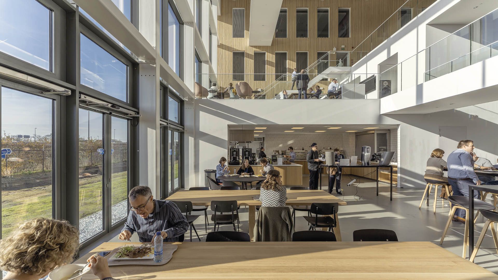 Le nouveau ‘Food Experience Centre’ offre un atrium représentatif et accueillant au cœur du bâtiment. Les liens visuels entre les étages des bureaux et l’atrium assurent une interaction vivante entre les différentes fonctions.