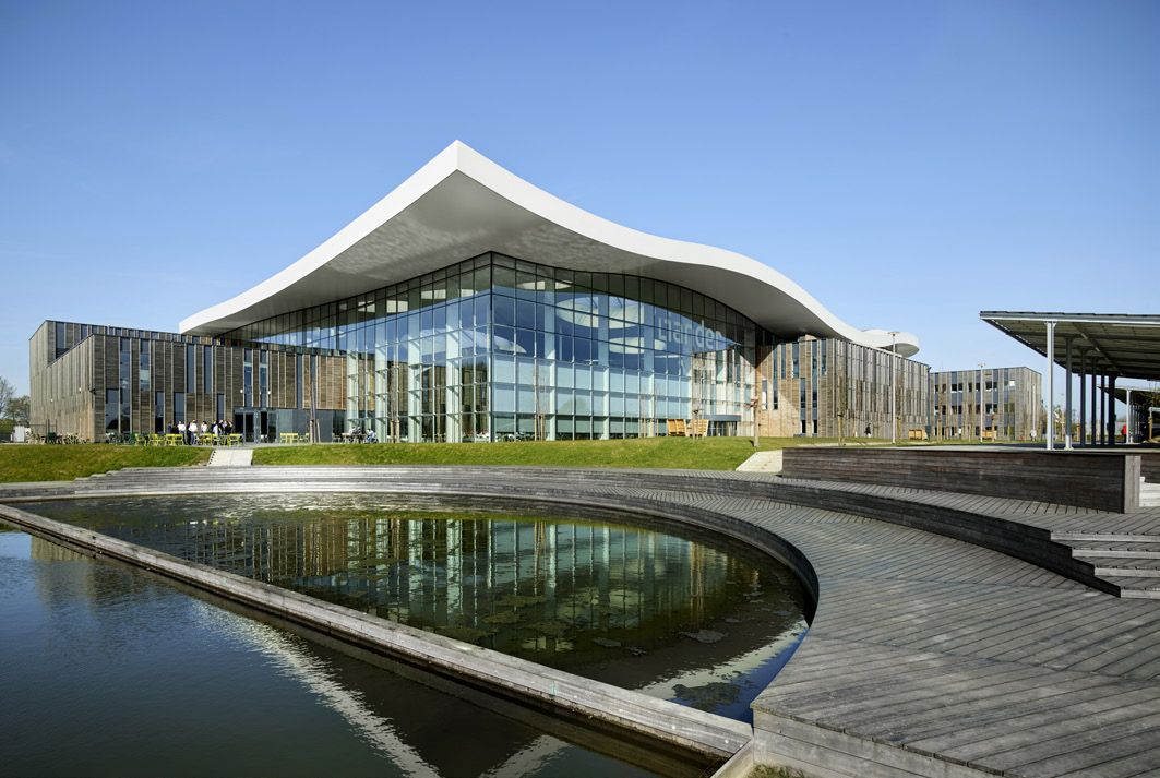 Pour la réinstallation de la société de réseau Liander, les matières premières et les matériaux ont fait l’objet d’une application circulaire maximale. Tout ce qui était encore utilisable dans l’ancienne construction a aussi été réutilisé. Une charpente de protection ondulée en acier enjambe les cinq bâtiments existants. Les toitures existantes sont des constructions en acier très légèrement dimensionnées, avec une surcapacité très réduite. C’est pourquoi la façade est suspendue à la nouvelle toiture.