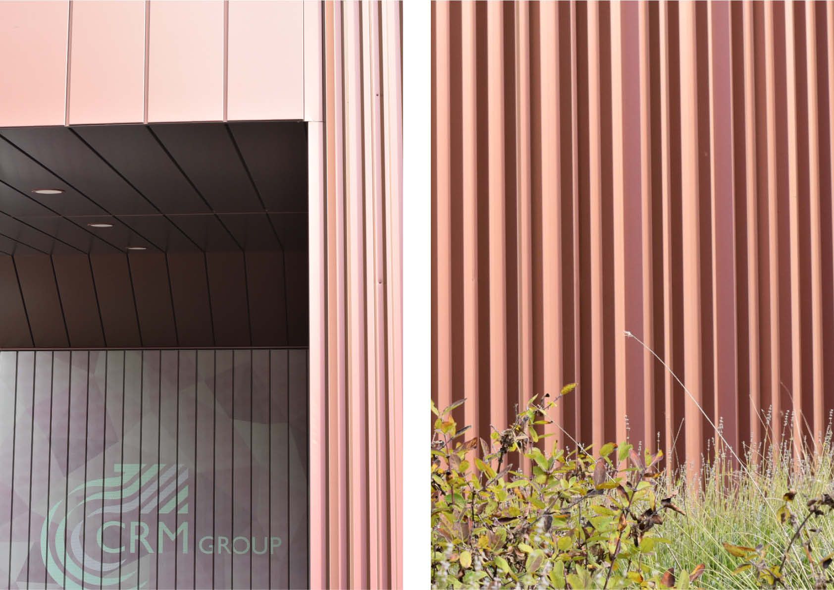 Het is de bedoeling dat de gevels mettertijd evolueren, met dank aan het dubbelwandige ARCHISOL-systeem (ArcelorMital): sandwichpanelen die aan de draagstructuur verankerd zijn en die een verschillende afwerking kunnen krijgen. Ten slotte zullen de gebruikte platte en gegolfde staalplaten ook een architecturale meerwaarde vormen door een reliëfspel te genereren dat versterkt wordt door de glinsterende afwerking van het oppervlak, waardoor de gevels als het ware in beweging komen en een unieke uitstraling krijgen.