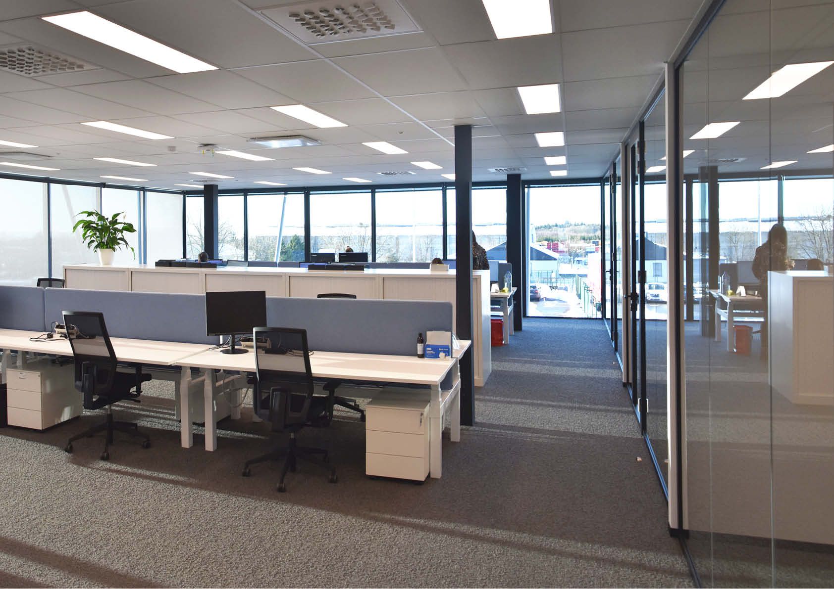 Op een industriële site in het hart van de Ardennen werd een nieuw kantoorgebouw opgetrokken, ter vervanging van verouderde kantoren die zich in een loods bevonden. Aangezien een goed overzicht er cruciaal is, is het gebouw volledig omzoomd met glas. Vandaar de nood aan een vaste zonwering in de vorm van een gegalvaniseerde structuur die de zonweringslamellen voor het overkragende verdiepingsgedeelte draagt.
