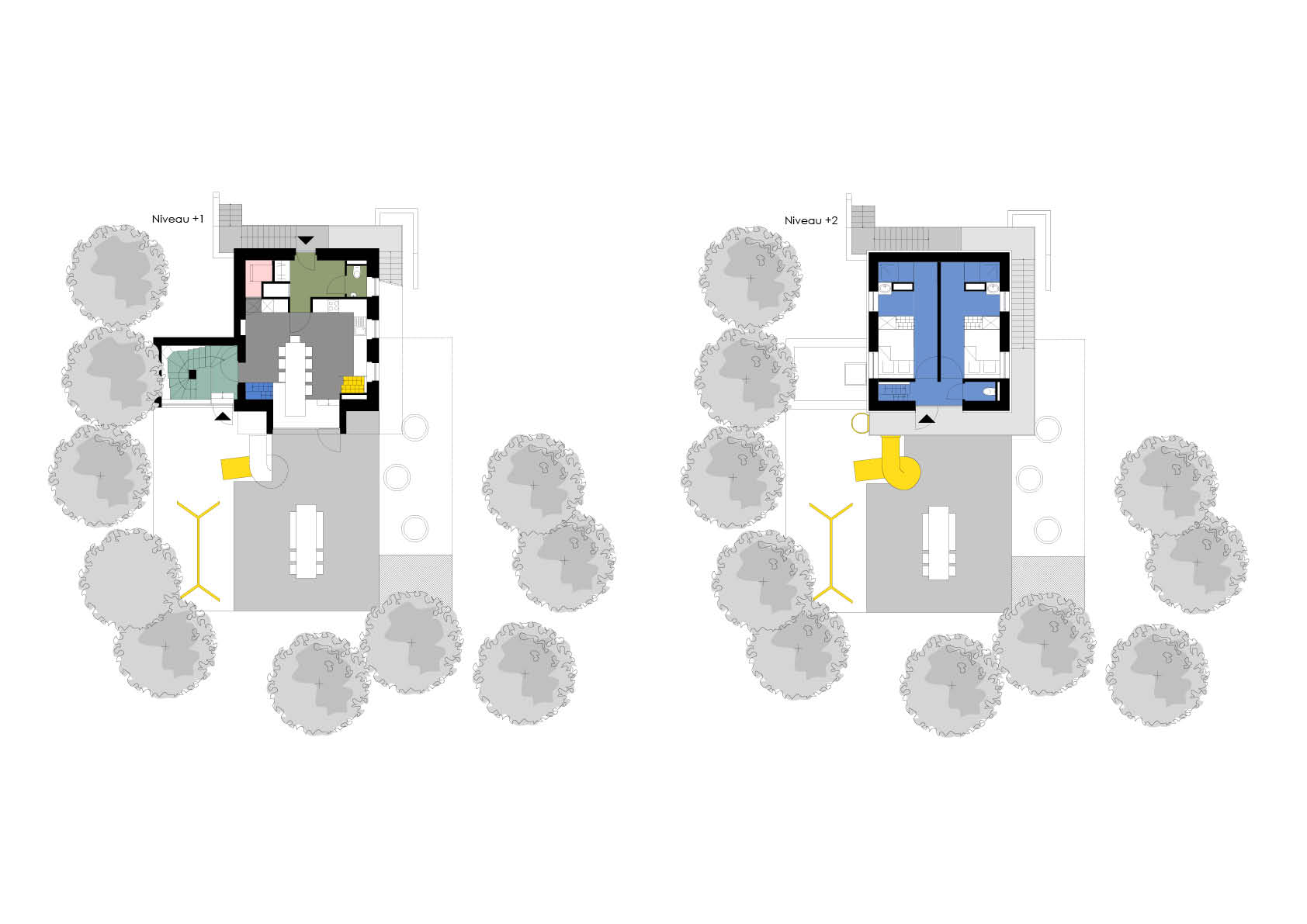 De bouwheer wilde een bescheiden oude watertoren omtoveren tot een bijzondere vakantiewoning. Het oorspronkelijke betonnen gebouw werd uitgebreid en uitgerust met een nieuwe verdieping. De gevels van die nieuwe verdieping zijn afgewerkt met een indrukwekkende ‘spiegelbekleding’, die de buitenomgeving reflecteert. De gevelbekleding bestaat uit op maat gemaakte cassettes van supergepolijste 304-inoxplaten, een keuze die zowel duurzaam als esthetisch verantwoord is. In het oorspronkelijke gebouw waren de ruimtes alleen verbonden door binnenladders en -luiken. De renovatie omvatte bijgevolg ook de installatie van een buitentrap om de circulatie te vergemakkelijken. De borstwering, die vervaardigd is uit S235-staal, werd op maat ontworpen met een pixelvormig design dat de interactie met de omringende natuur extra versterkt.