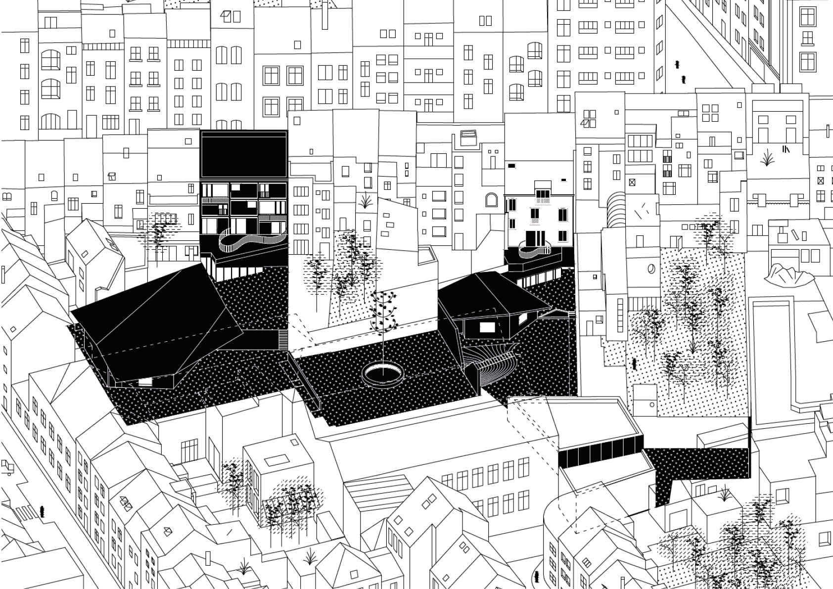De opdracht voor het project Intergenerationele Pool bestond erin te voorzien in een wijkcontract en maakt deel uit van een bredere inbedding van het sociaal-maatschappelijk leven van Etterbeek. Op het programma stond een veelvoud van sociale functies, samengebracht onder de noemer generaties, zoals een muziekschool, een crèche, een spelotheek en sociale woningen.