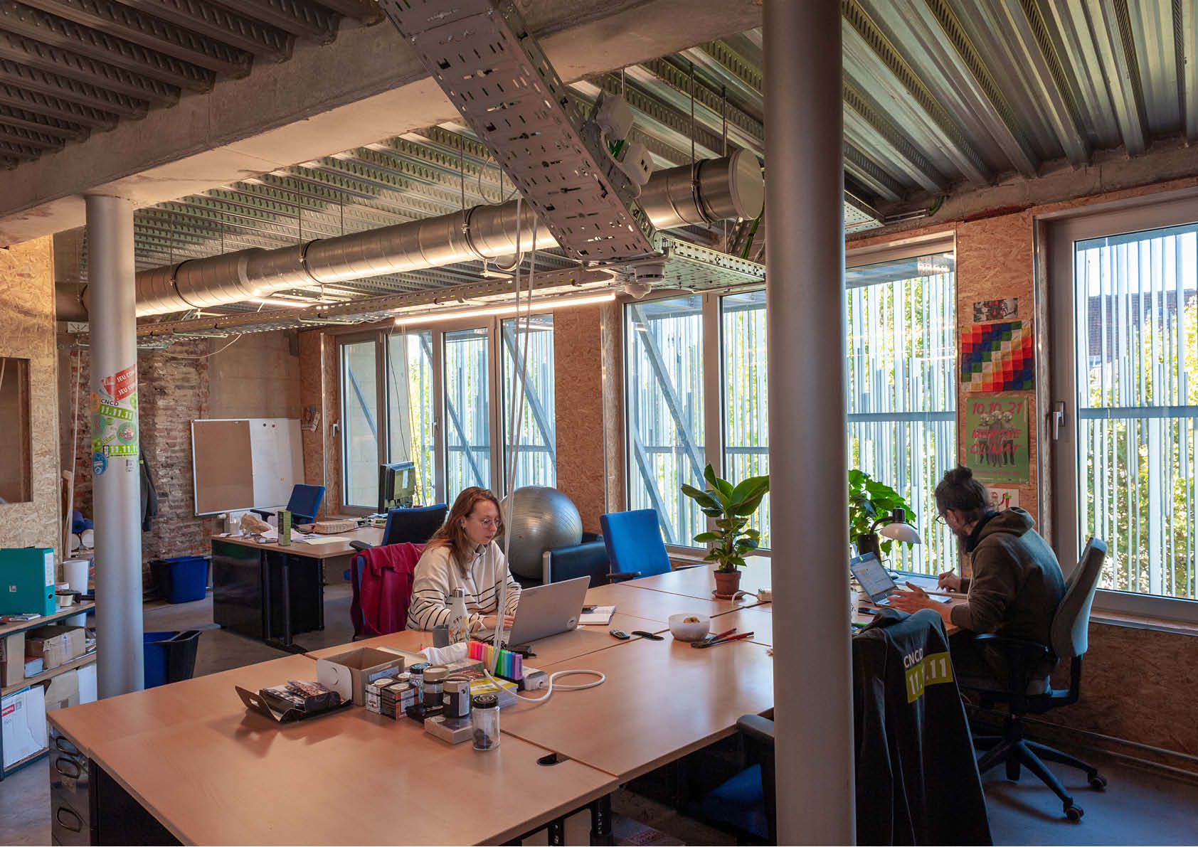 De architecten wilden dit lowtechgebouw bewust een brutalistische uitstraling geven. Dat onderstreept de bijzondere geschiedenis van het pand zonder overbodige franjes. Het staal, dat oorspronkelijk ontbrak, is gebruikt om het gebouw een nieuwe samenhang te geven en het comfort van de gebruikers sterk te bevorderen.