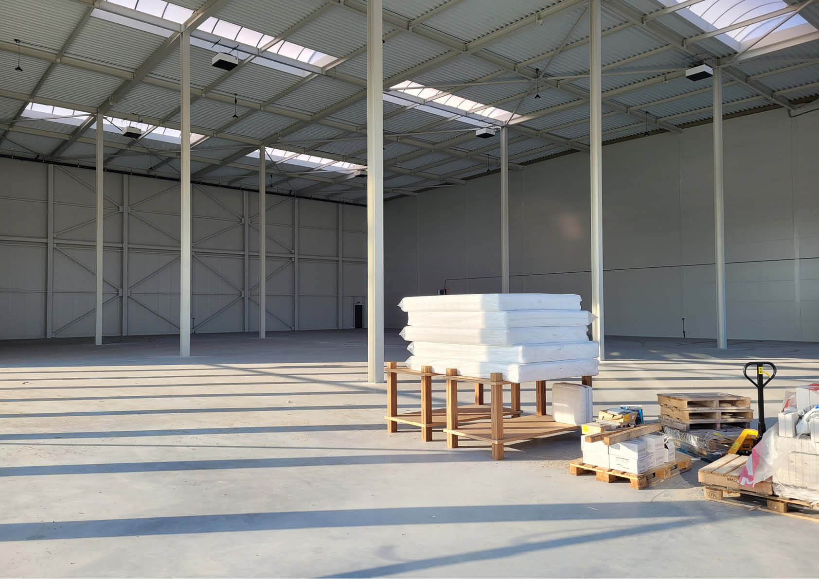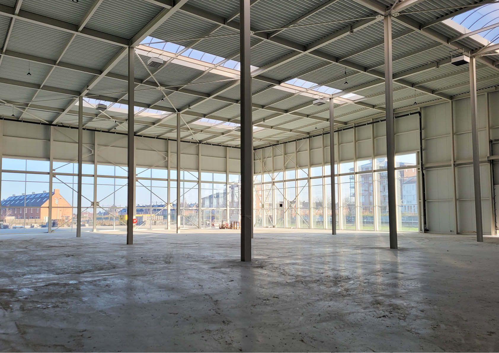 Op de site was voorheen een ander bedrijf gehuisvest dat volledig was uitgebrand. Enkel de beschadigde vloerplaat, kruipkelder en fundering waren overgebleven. Het studiebureau had een lichte staalstructuur ontworpen om bovenop de bestaande funderingen te plaatsen. De zwaarste beschadigde vloerplaten en funderingsbalken werden hersteld.