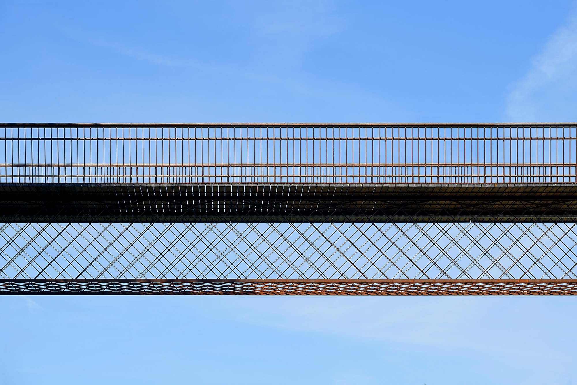 Het is een 54 m lange weervast stalen voetgangersbrug met twee traveeën. De voetgangersbrug is geplaatst op de voormalige landhoofden en pijlers van een spoorwegbrug die na Wereldoorlog II werd ontmanteld.
