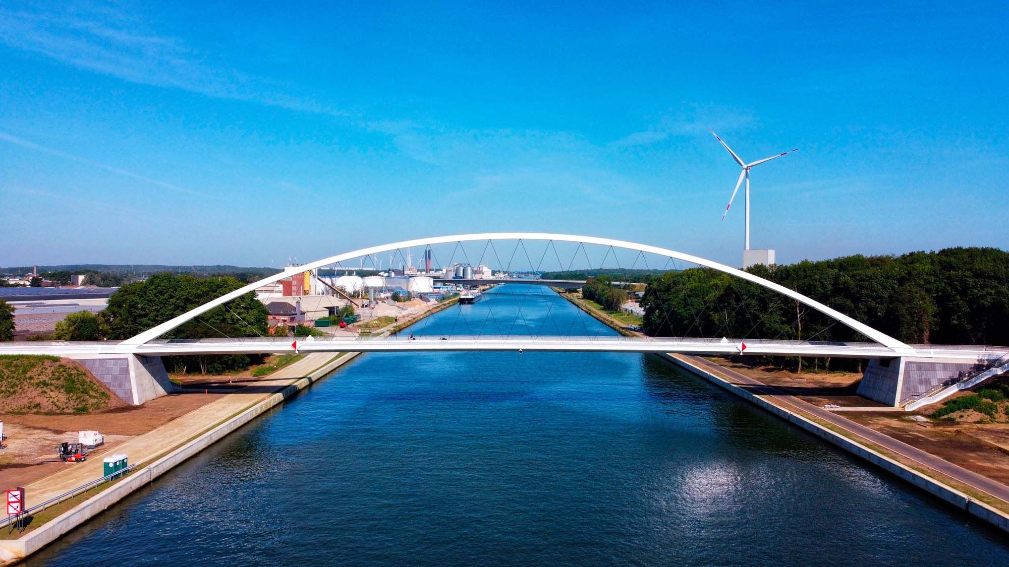 In Tessenderlo werd een bestaande kanaalbrug vervangen door een nieuwe stalen voetgangers- en fietsersbrug. De boogbrug is 22 m hoog en overspant in één veld 137 m. De enkele boog staat in de as van de brug.